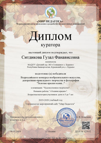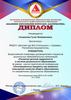 ГРАМОТЫ И БЛАГОДАРНОСТИ ЗА ПОДГОТОВКУ ВОСПИТАННИКОВ гр. "КАПЕЛЬКА"